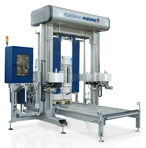 Robopac Roboband - автоматическая обвязочная машина для упаковки полосой плёнки. Обвязочный станок фиксирует ящики и другую устойчивую продукцию на паллете полосой стрейч-плёнки. Roboband наносит пленку как на поддоны, так и на длинномерную продукцию.