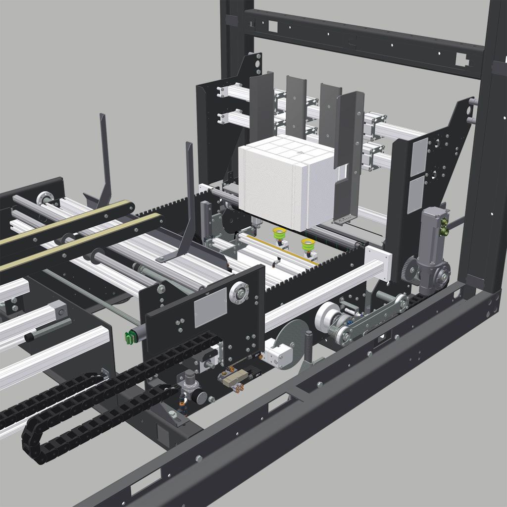 Формирование коробок по всем правилам. Картонаторы SMI оснащены фиксированными направляющими, которые на выходе из машины удерживают стенки упаковки под давлением. Эта система обеспечивает идеальную и долговечную форму коробок, в отличие от систем прессования с вращающимися цепями, которые не могут обеспечить такой же уровень качества.