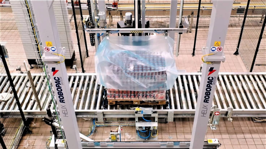 Robopac Helix Evo - автоматический паллетообмотчик с вращающейся рукой для упаковки 75 паллет в час