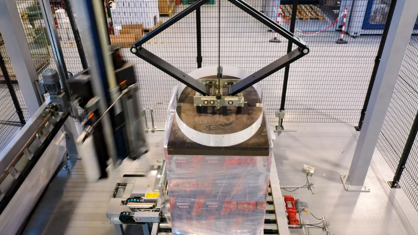 - Вертикальный прижим стабилизирует лёгкий и подвижный груз на паллете во время обмотки.