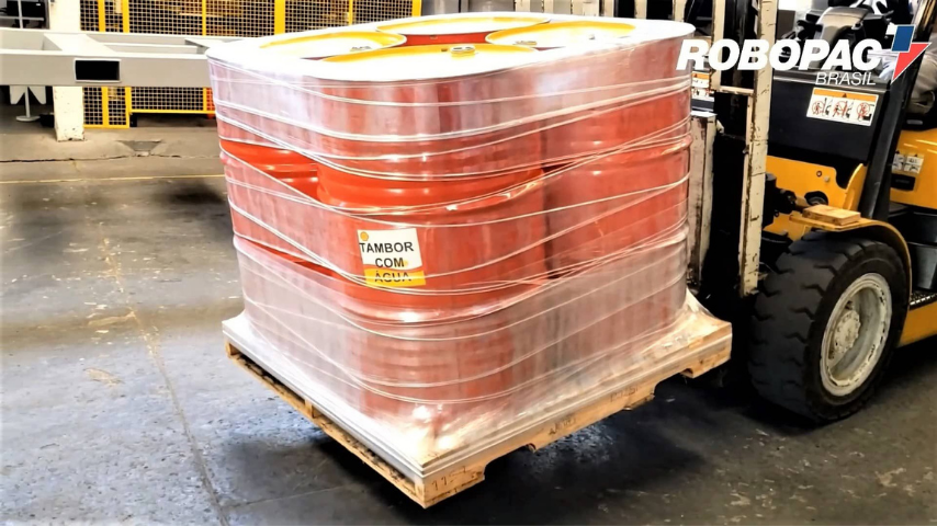 - Сужение плёнки плотно стягивает продукт на паллете и убирает конденсат с поверхности груза.