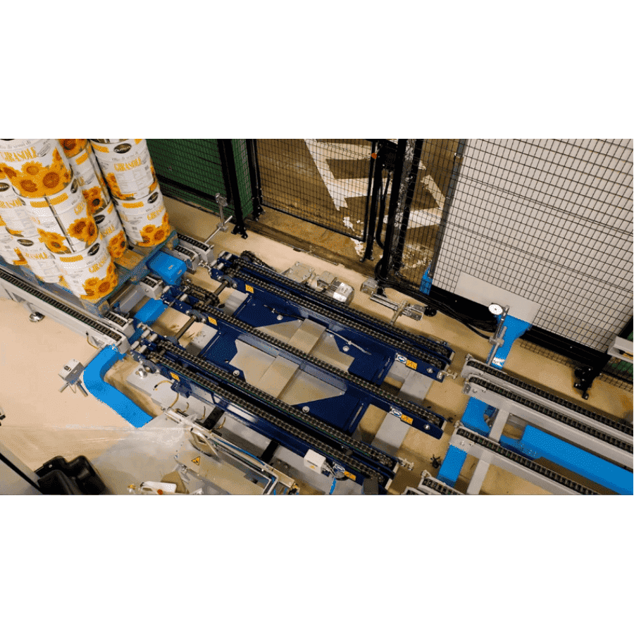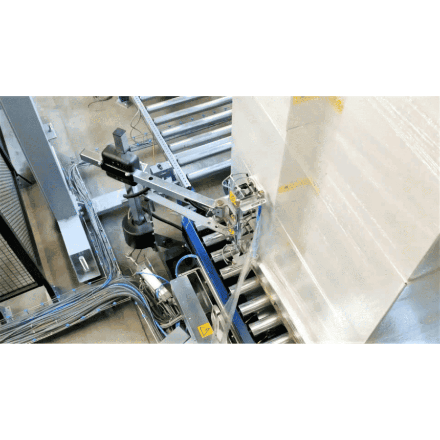 - Линейная и угловая выгрузка паллет (паллетообмотчик с углом) для интеграции в упаковочные линии.