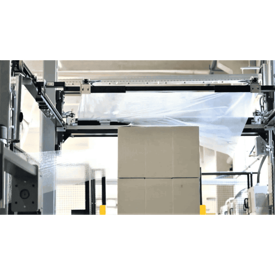 - Двухмоторная каретка обеспечивает точное распределение плёнки и плотную фиксацию груза без повреждений.