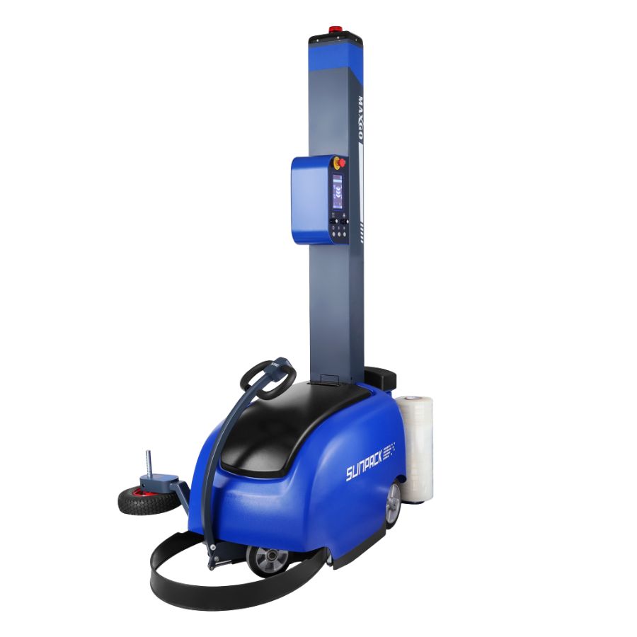 Cамоходный робот-обмотчик Sunpack MAXGO - это мобильный робот для автоматической обмотки паллет стрейч-плёнкой. Он не требует стационарной установки и легко адаптируется к любому типу груза — независимо от формы, размера или веса. Работает от аккумулятора, обеспечивая до 8 часов автономной упаковки без подключения к сети.