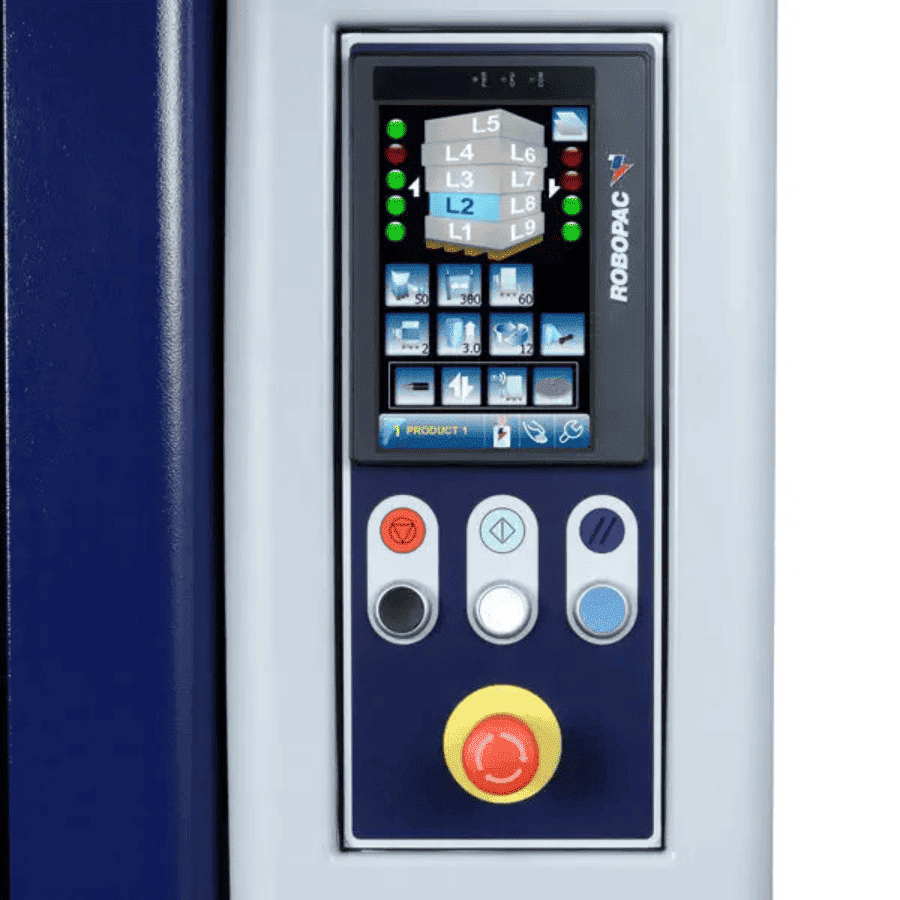 Robopac Rototech — полуавтоматический паллетообмотчик с вращающейся рукой и автоматическим отрезанием и запайкой плёнки. Машина оснащена двухмоторной кареткой PVS с растяжением плёнки от 150 до 400% и одномоторной кареткой PDS с фиксированным коэффициентом растяжения (по умолчанию 250%). Натяжение плёнки на углах паллеты регулируется тензодатчиком, углы остаются без деформации. Управление осуществляется через сенсорный экран, включая цикл подъёма и опускания, нанесение дополнительных слоёв, укрытие верха и скорость вращения стола.