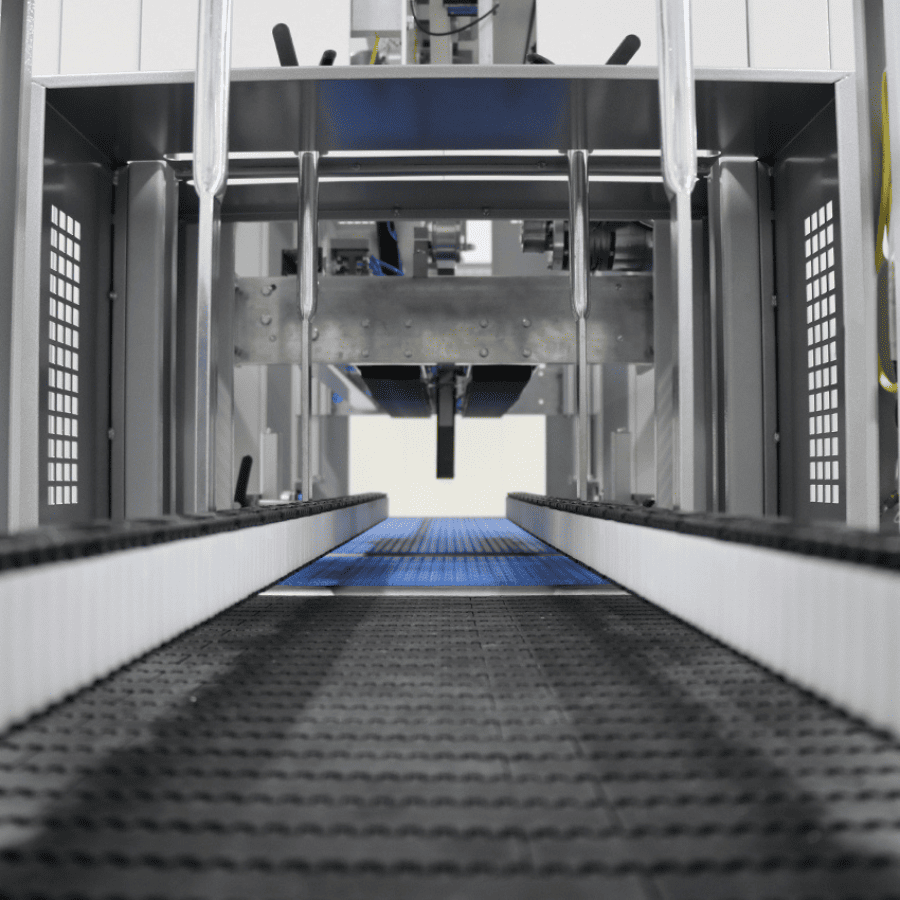 - Входной конвейер из термопластичного материала с резиновым покрытием и высоким коэффициентом трения.