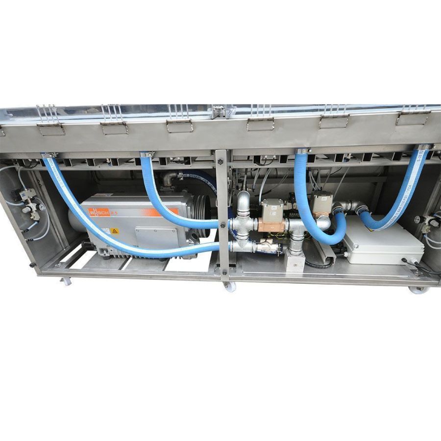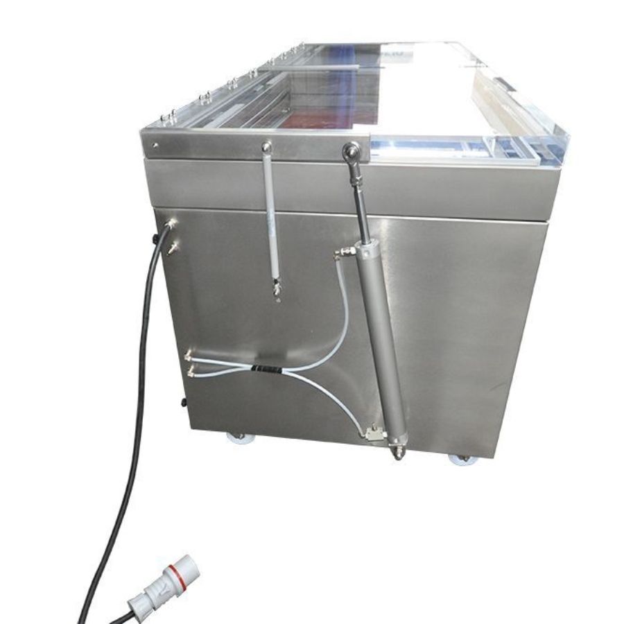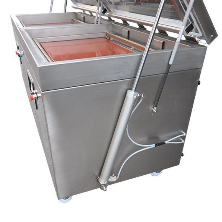 Двойной вакуумный колпак: Машина оборудована двумя камерами, что позволяет одновременно обрабатывать два пакета с продуктами. Это увеличивает производительность и экономит время.